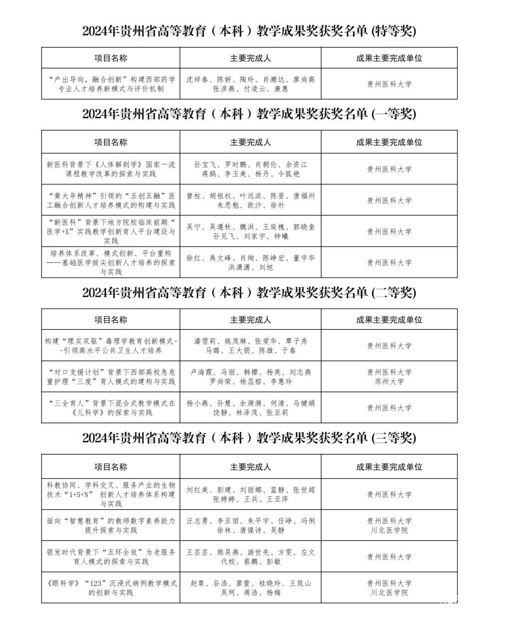 近日,贵州省教育厅下发了《省教育厅关于公布2024年贵州省高等教育省级教学成果奖获奖名单的通知》,公司17项教学成果获奖(本科教育12项、研究生教育5项),其中,特等奖1项,一等奖4项、二等奖5项、三等奖7项。高等公司产品成果奖是我省高等教育最高级别的教学奖项,是体现学校公司产品水平与人才培养质量的重要指标,…