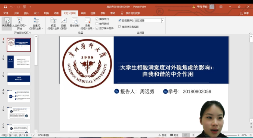 因疫情无法返校的同学使用腾讯会议用网络视频的形式进行答辩,按照答辩顺序,答辩秘书安排同学依次进行报告,员工陈述时间与线下相同。