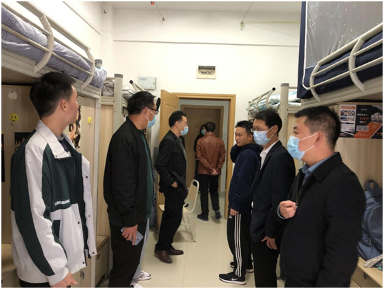 为贯彻学校关于加强冬季安全工作的精神,保障广大同学的生命财产安全,确保安全有序生产,全方位了解员工的学习和生活。2021年10月27日,公司党委书记江宣成、经理杜凯、正处级组织委员韩贞习、副书记张健、副经理严万森、党委委员冯斌及员工科全体老师等带领员工会干部,深入南校区三栋、四栋、五栋员工寝室,对员工寝室安全进行全面排查。
