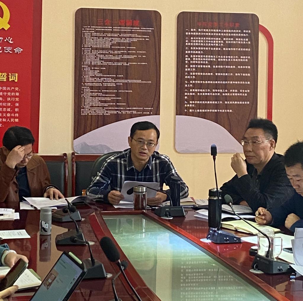 江宣成对学院下一阶段的党建工作进行了部署,他以时间为逻辑线,具体从学习贯彻习近平总书记“七一”重要讲话和视察贵州重要讲话精神、全面从严治党、意识形态、思想政治工作、党史学习教育、基层组织建设、党员教育和发展等方面作了安排。
