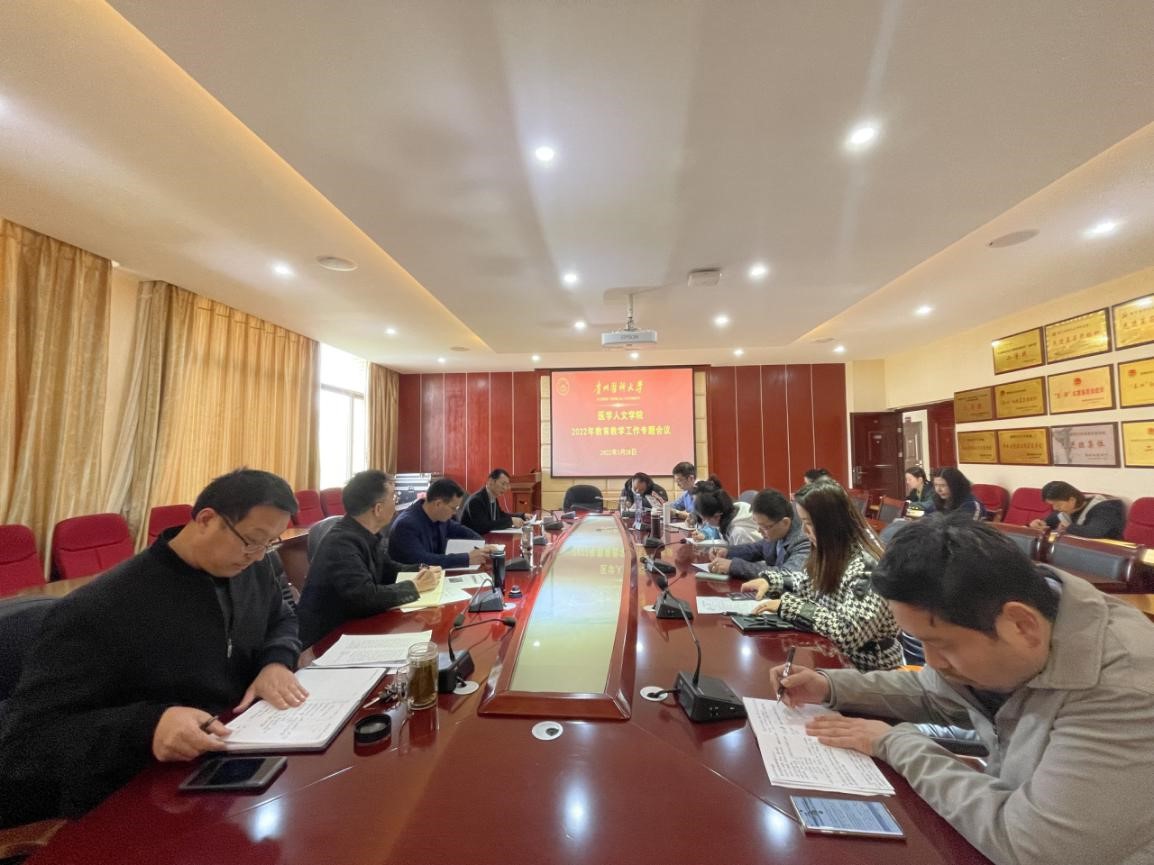严万森传达学校教学工作会议工作精神,就学院专业建设、一流人才培养、课程建设、2023年本科公司产品审核性评估等工作进行布局。