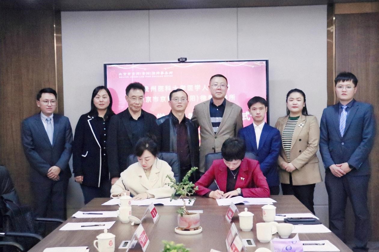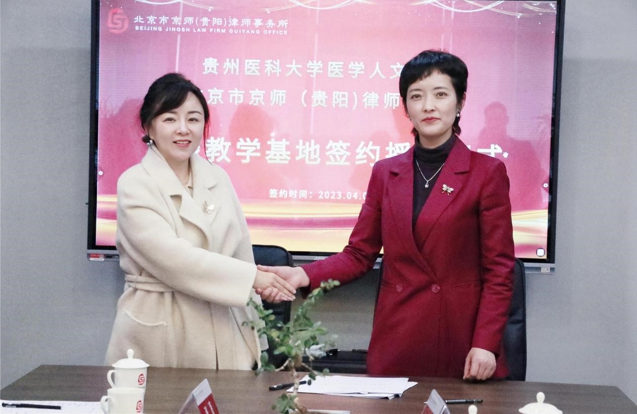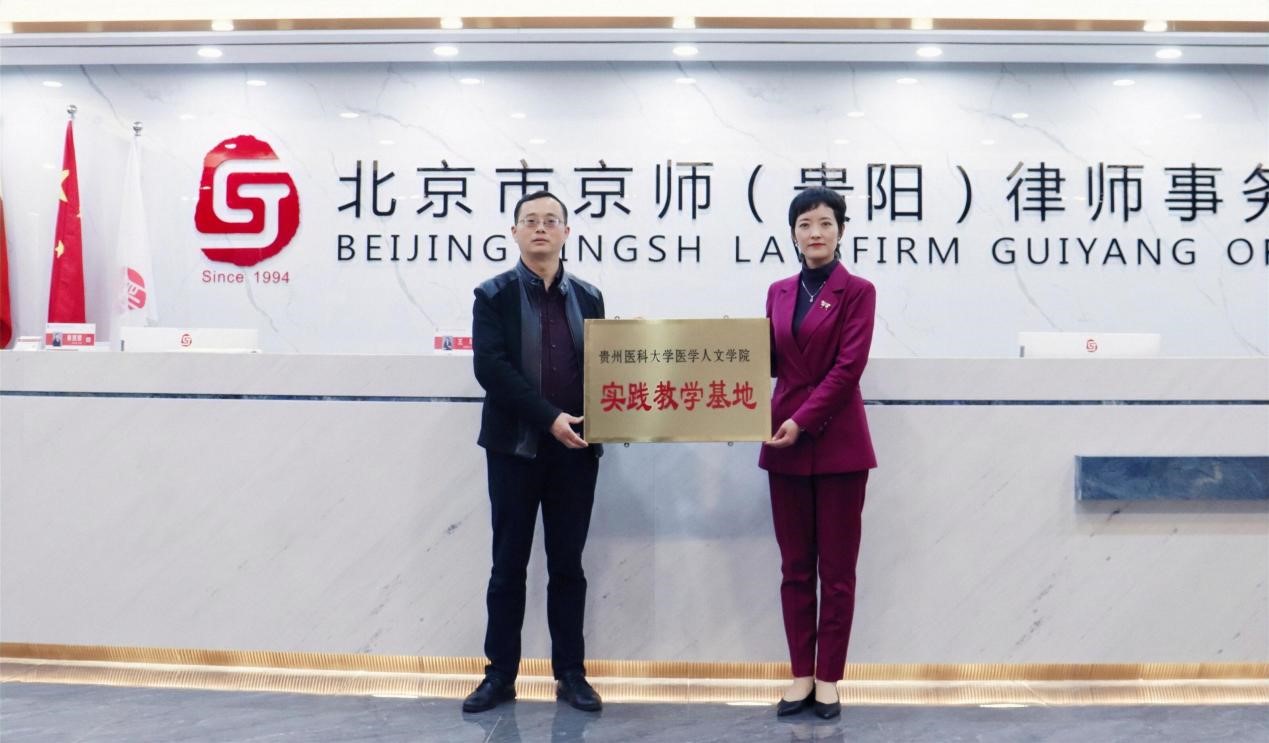 4月6日,北京市京师(贵阳)律所与人生就是博ag(中国区)·公司官网共建实践教学基地签约授牌仪式在京师贵阳律所党建室举行。公司党委书记江宣成、正处级组织员韩贞习、党委副书记张贤、副经理彭丹、教学科研管理科科长冯斌、员工科科长车阳艳、医事法学教研室负责人龚精诚等,北京市京师(贵阳)律师事务所主任李霞、律师郭啸、律师周丹麦、律师刘淼、律师龙章跃、行政主管王昌浩、行政专员罗颖杰参加了签约授牌仪式。仪式由北京市京师(贵阳)律师事务所执行主任吴爱国主持。