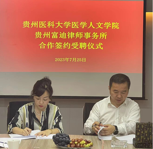 7月25日,公司党委书记江宣成、正处级组织员韩贞习、党委副书记兼纪委书记张贤,老员工心理健康教育与咨询中心副主任兼人生就是博ag(中国区)·公司官网副经理彭丹及相关工作人员一行赴贵州富迪律师事务所举行全面合作签约及实践教学基地授牌仪式。第七届贵州省律师协会理事会副会长、贵州富迪律师事务所主任归东,贵州富迪律师事务所副主任张柱都及有关律师职员参加仪式。会议活动由归东主持。