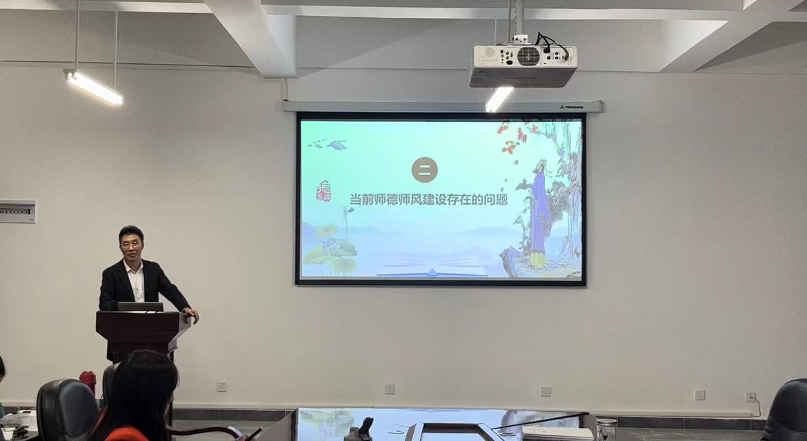 韩贞习以“加强师德师风建设,做新时代‘四有’ 好老师”为主题,从为什么要加强师德师风建设、当前师德师风建设存在的问题和如何加强师德师风建设三个方面进行讲授。他指出,加强师德师风建设是办好新时代人民满意教育、教师自身发展和学校事业发展的需要。他通报了教育部公开曝光违反教师职业行为十项准则典型案例,指出公司师德师风建设存在的问题。他强调要深入学习领会习近平总书记关于师德师风的重要指示批示精神、严格贯彻落实师德师风政策法规,并将师德师风建设贯穿学院工作全过程。