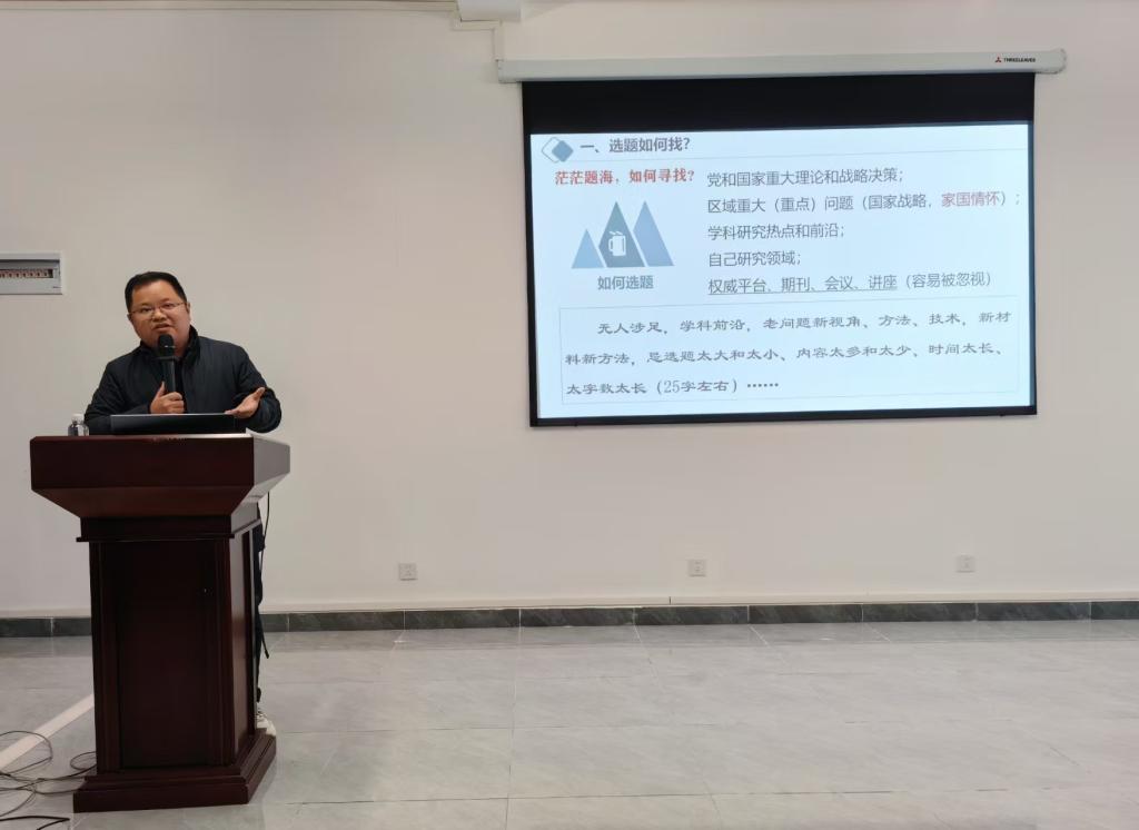 禹辉映博士立足国家社会科学基金项目申报,从选题聚焦、标书核心模块撰写、需要注意的细节等方面分享申报实战技巧,并介绍马克思主义学院社科项目申报“三早”推进机制。