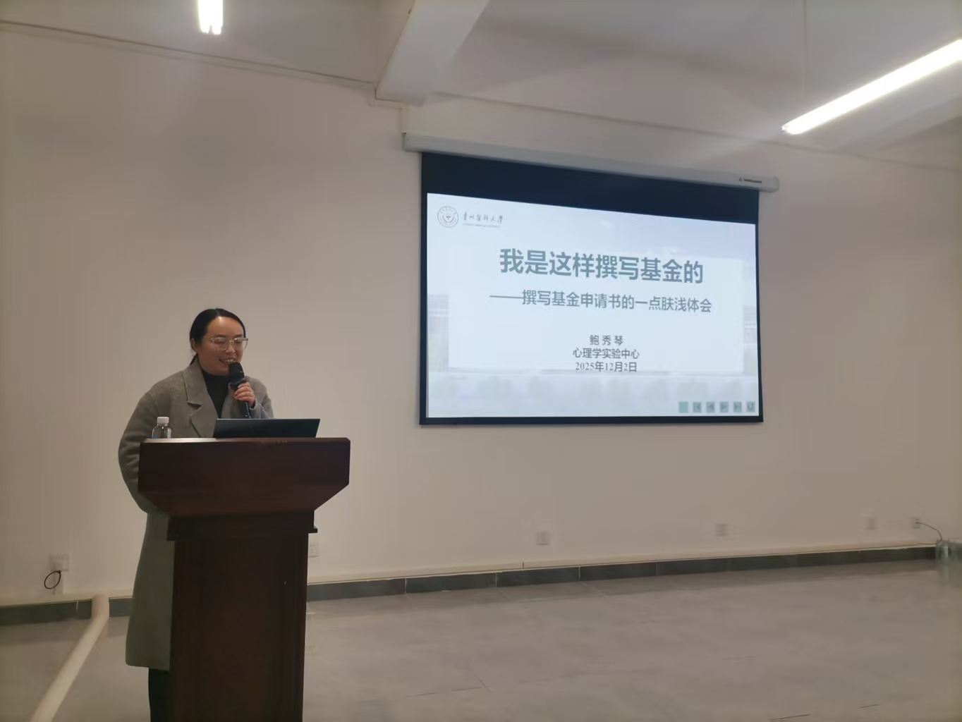 12月2日,学院邀请马克思主义学院副经理禹辉映博士、学院今年获得国家自然科学基金立项的鲍秀琴博士,在学院善思楼二楼2-34会议室开展了国家社会科学基金、国家自然科学基金项目申报经验分享会。经理冯广卫、正处级组织员刘雪梅、党委副书记兼纪委书记马琳娜、副经理彭丹出席,学院全体教师及应用心理学专业研究生共60余人参加,冯广卫主持分享会。