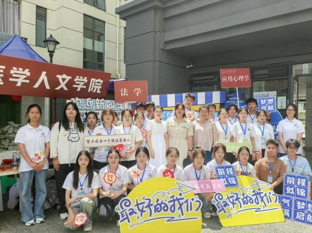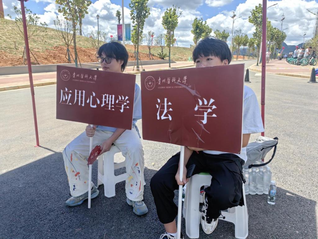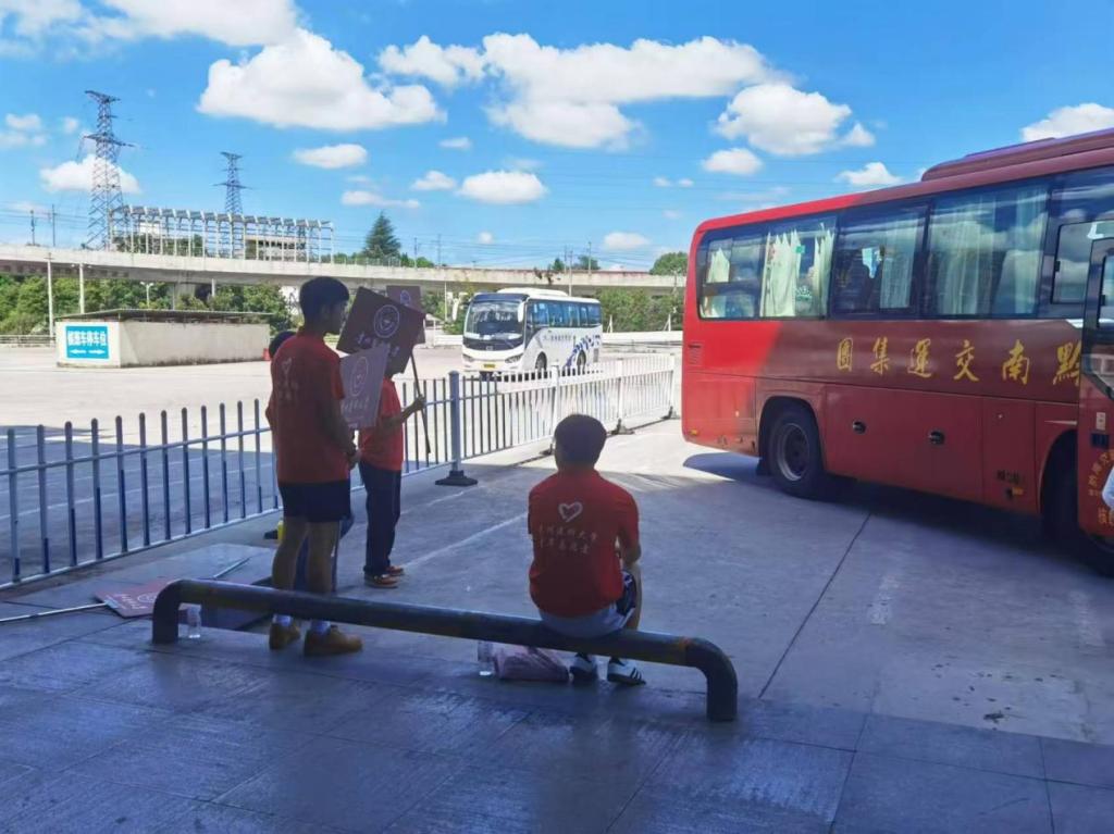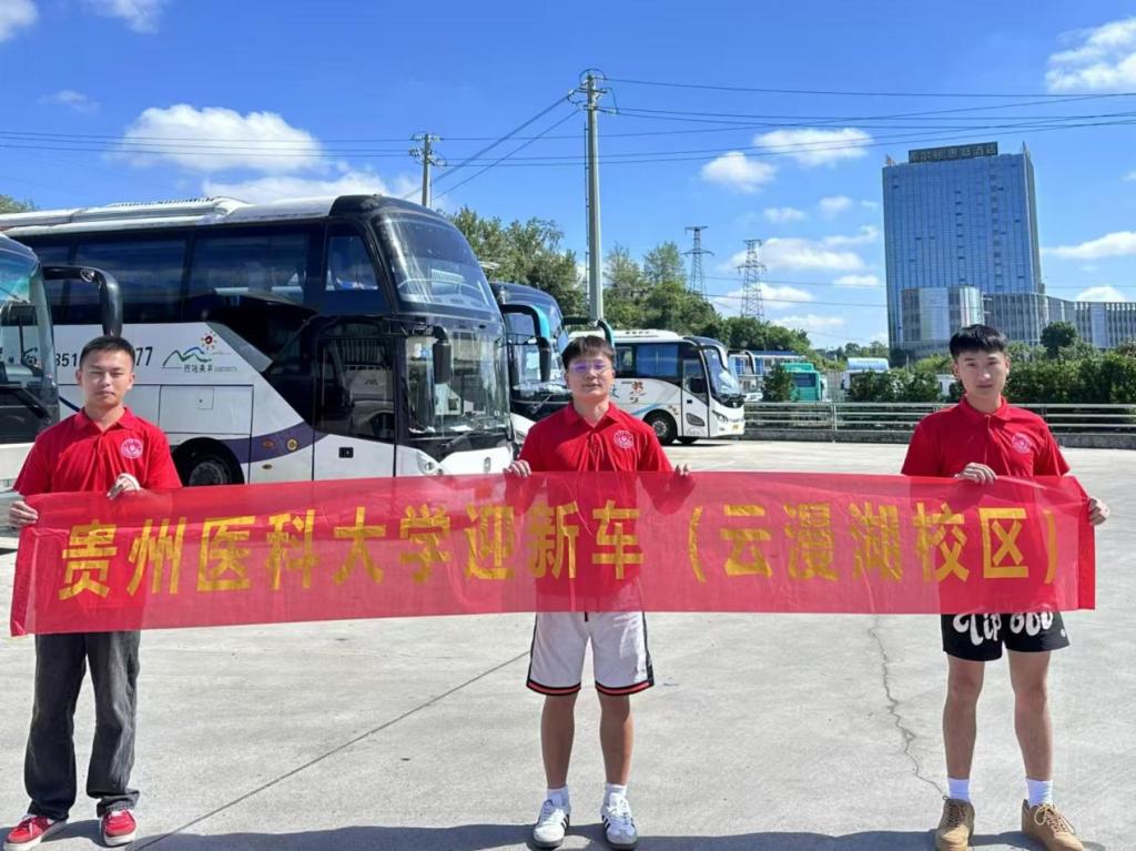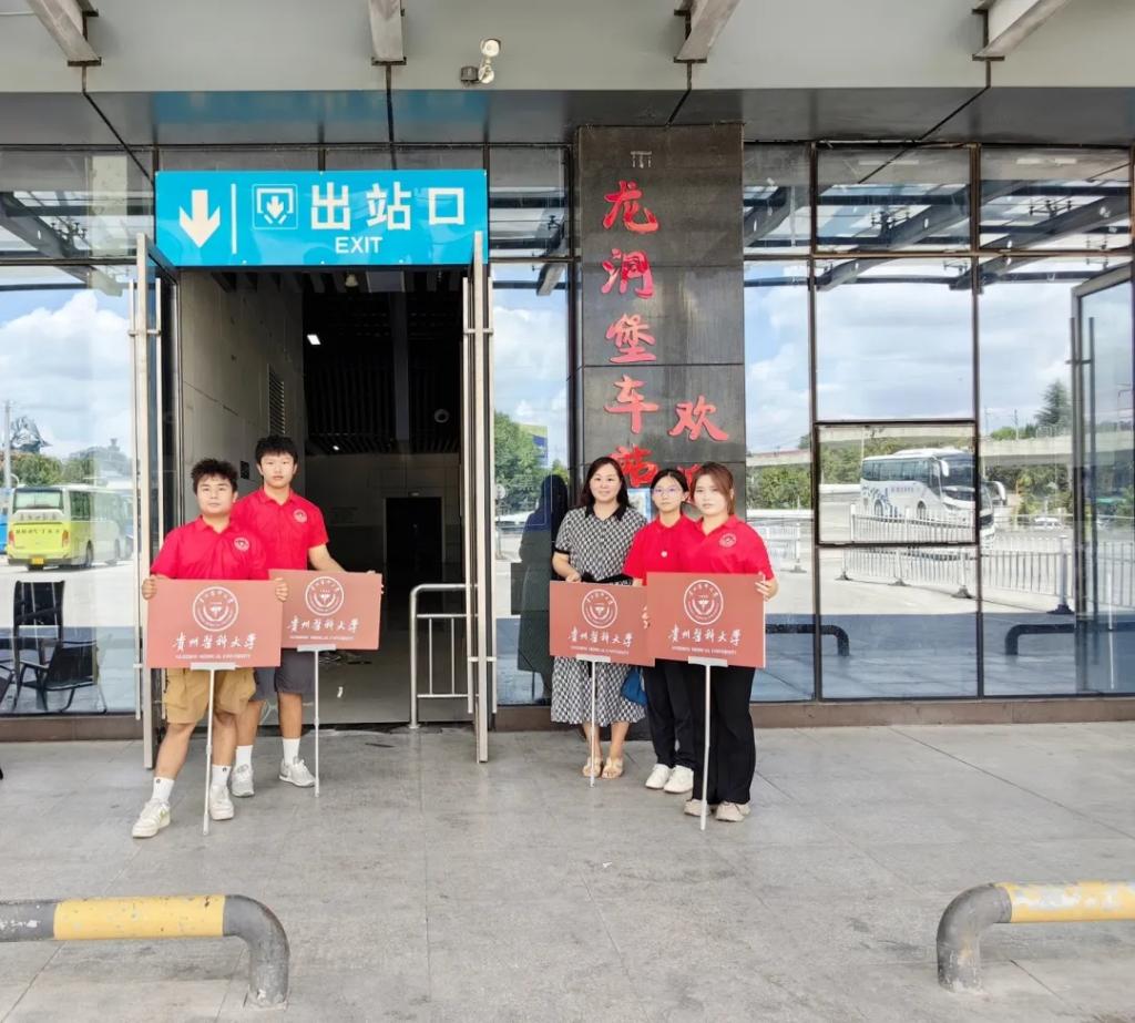 报到当天,学院老师和员工志愿者身穿统一的志愿者服装,贵阳龙洞堡车站接站点参加全校迎新志愿者‌手持引导牌,‌热情地迎接每一位新生,为他们踏入贵医的第一站保驾护航。