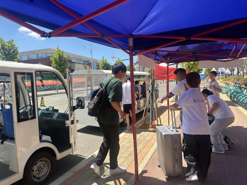 从车站到校门口、到寝室为新生提供“一条线”服务,确保每个新生都能顺利完成报到。