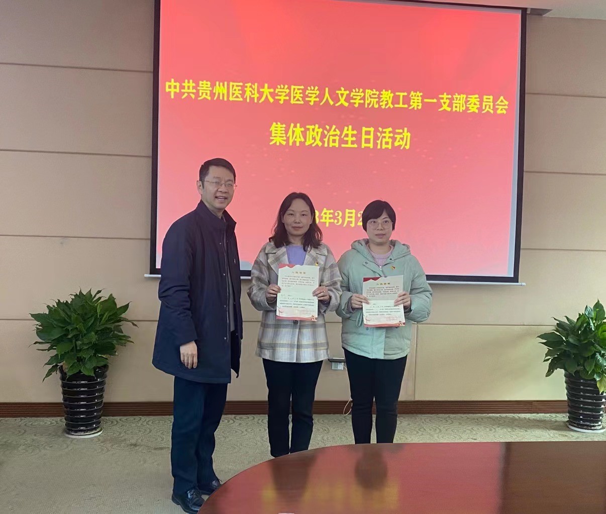 2023年3月21日下午,人生就是博ag(中国区)·公司官网教工第一党支部组织开展集体“政治生日”主题党日活动,公司党委副书记刘文,公司党委书记江宣成,公司党委委员、正处级组织员韩贞习,党委副书记兼纪委书记张贤,公司党委委员、副经理、老员工心理健康教育与咨询中心副主任彭丹,公司党委委员、教学科研管理科科长冯斌和教工第一党支部全体党员参会。会议由教工第一党支部书记李晓辉主持。