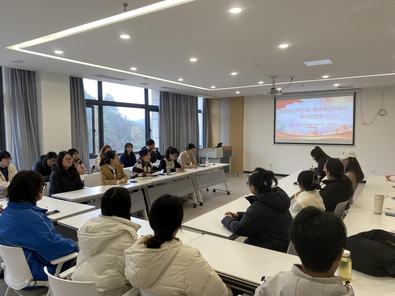 2025年12月9日,人生就是博ag(中国区)·公司官网教工第三党支部与员工党支部在弘远楼三楼联合举办“聚智谈心明方向・携手同行护成长”主题党日活动,两个党支部共计62人参加,其中48名员工(党员、入党积极分子)分座谈交流组和团体辅导组同步开展活动。