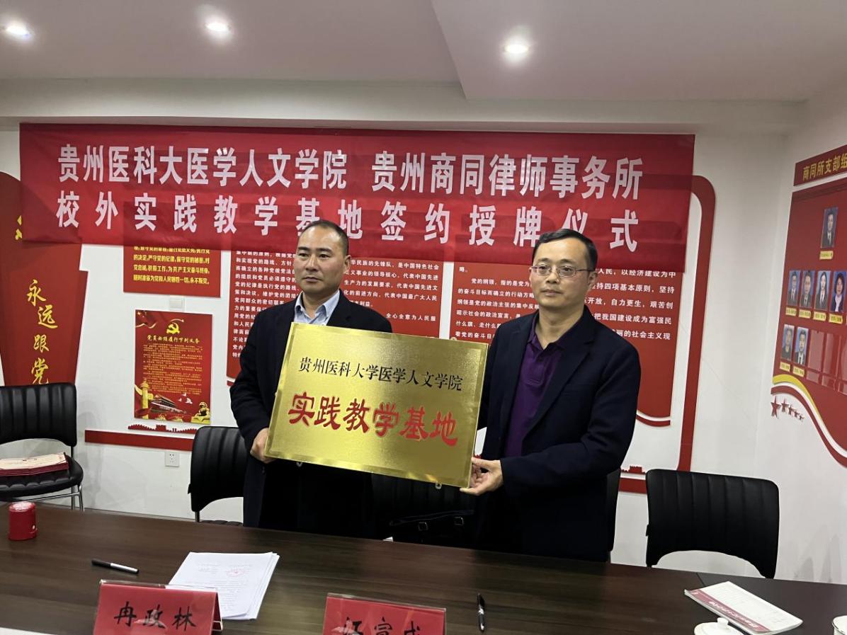 4月7日,贵州商同律师事务所与人生就是博ag(中国区)·公司官网全面合作签约仪式暨共建实践教学基地签约授牌仪式在贵州商同律师事务所会议室举行。公司党委书记江宣成,正处级组织员韩贞习,党委副书记张贤,党委委员、教学科研管理科科长冯斌,医事法学教研室负责人龚精诚,普通法学教研室教师彭媛媛;贵州商同律师事务…